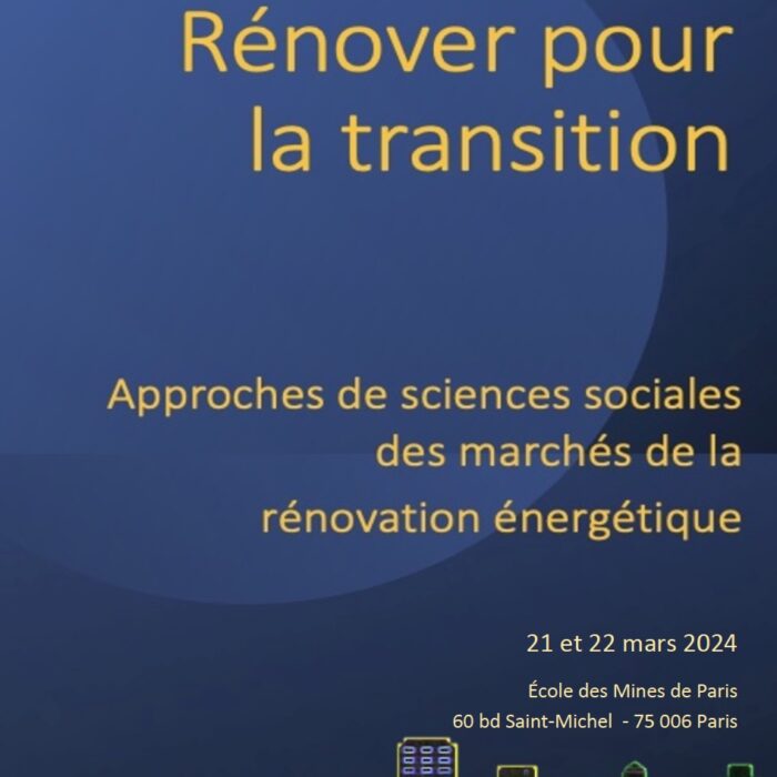 Venez participer aux journées de conférence « Rénover pour la transition - Approches de sciences sociales des marchés de la rénovation énergétique », à Paris au sein de l'École de Mines Paris - PSL, les 21 et 22 mars 2024. Cette journée d’étude est organisée dans...